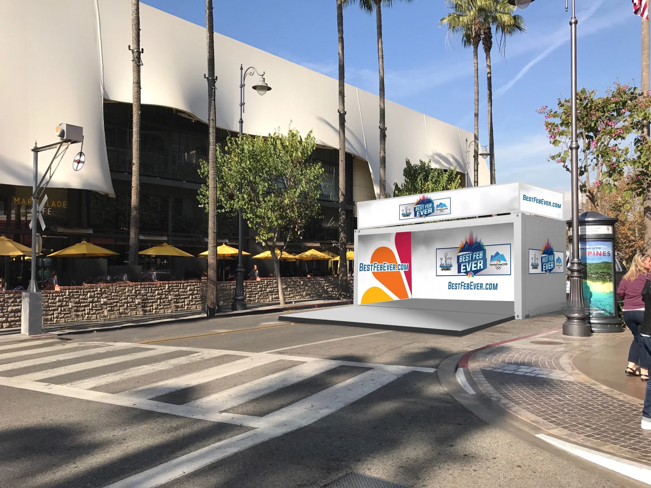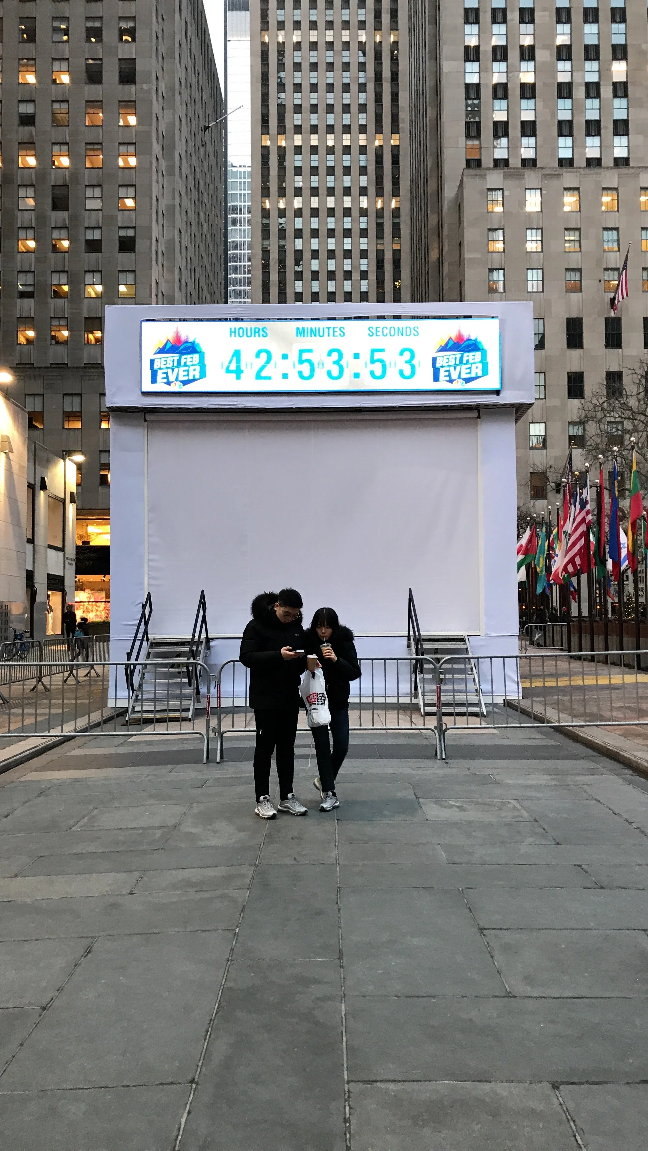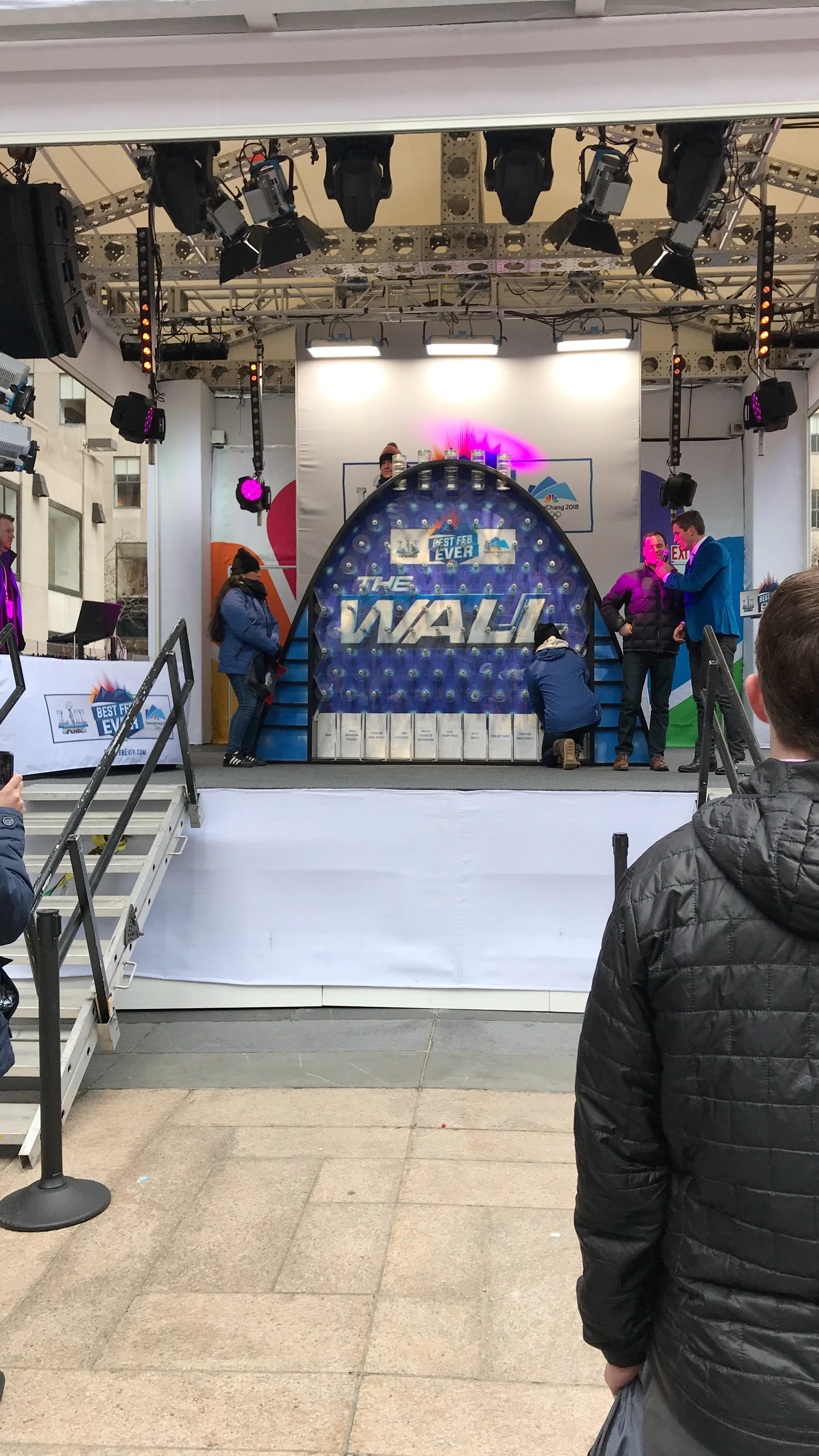 NBC's "Best February Ever" at Rockefeller Center was a month-long celebration to promote the network's winter programming, which included both the Super Bowl LIII and the Winter Olympics. The event transformed the iconic plaza into a hub of interactive experiences, featuring appearances by NBC stars, live performances, themed installations, and opportunities for fans to engage with their favorite shows. Activities ranged from game show-style challenges and photo booths to meet-and-greets and exclusive previews aimed to generate excitement and drive viewership for NBC's lineup during the February sweeps period. There were also satellite experiences in Los Angeles, Philadelphia, and Minneapolis.